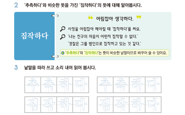 교과서에 자주 등장하는 어휘 중에서 자연스럽게 터득하기 어려운 어휘를 학습할 수 있습니다.