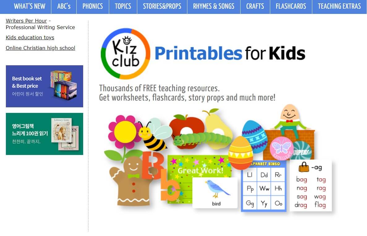 이 사이트는 방대한 자료를 무료로 다운받을 수 있게 해 놓았는데요, 숫자 쓰기부터 알파벳, 파닉스, 미국지도, 과학, 종이활동, 성경, 퍼즐, 빙고 등 세분화되어 있습니다.
