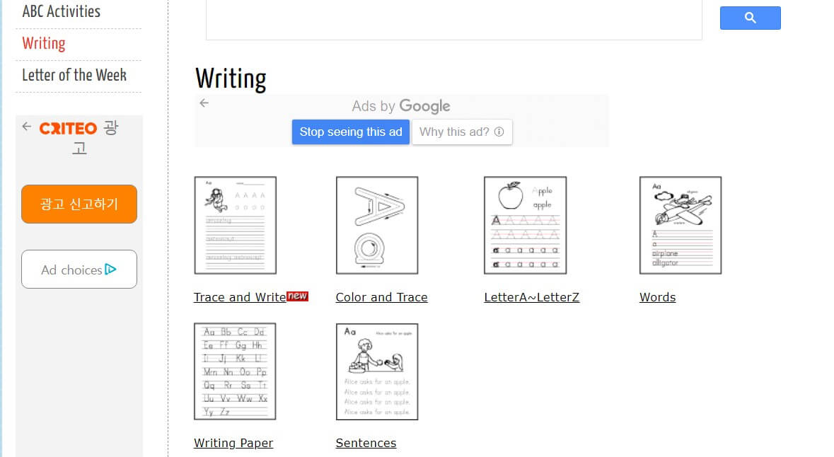 학습지 시키고 싶은데 비용적으로 부담이 되거나, 엄마표 영어를 위해서 가볍게 풀어볼 만한 워크시트를 찾고자 한다면 다음과 같이 무료 사이트를 추천합니다.