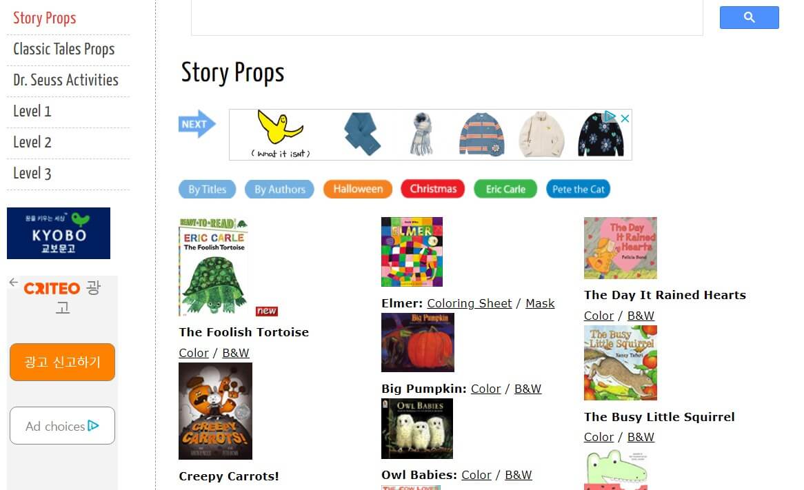 ▶ STORY & PROPS : 이야기활동지, 닥터수스 활동지, 레벨에 따른 미니북