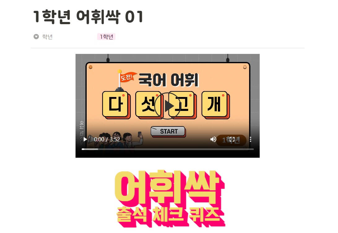 초등온라인학습놀이 자료인데, 국어어휘를 키울수 있는 영상자료를 제공합니다.