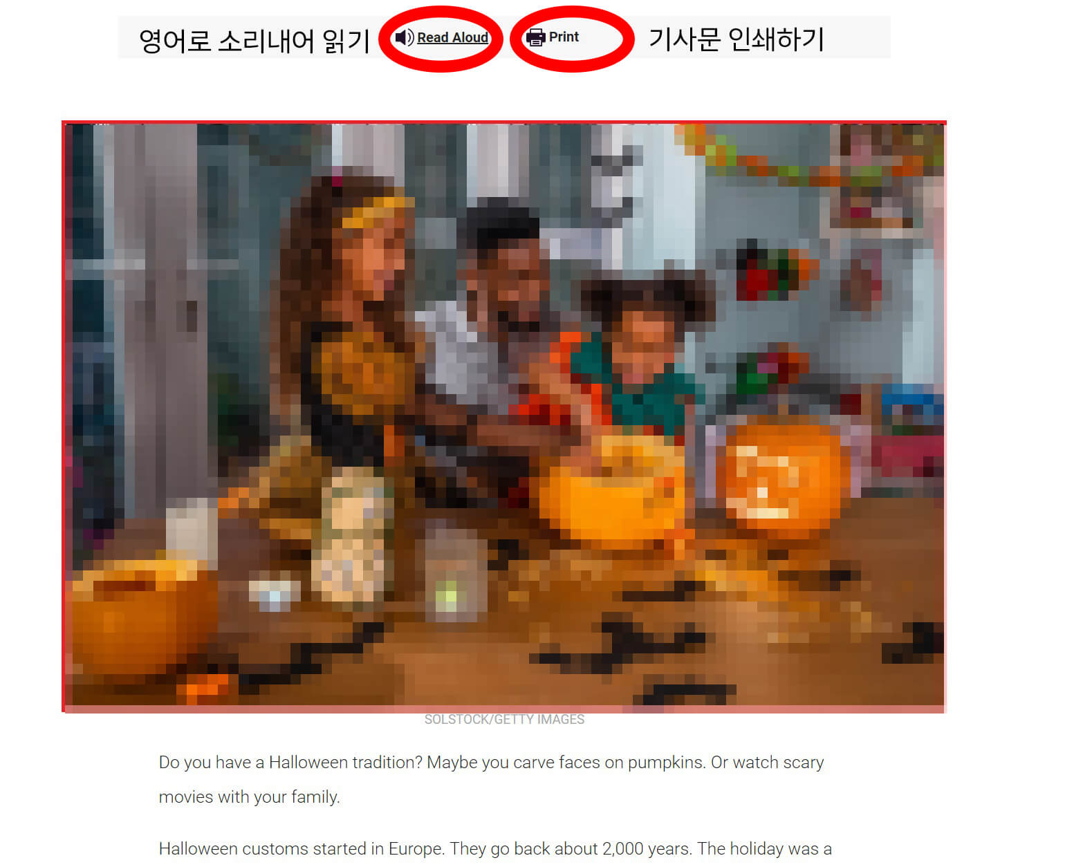 4. 기사를 선택하면 짧은 글을 읽을 수 있는데. 내용에 대해서 듣고 싶으면 [Read Aloud], 기사문의 인쇄를 원한다면 [Print]를 선택합니다.