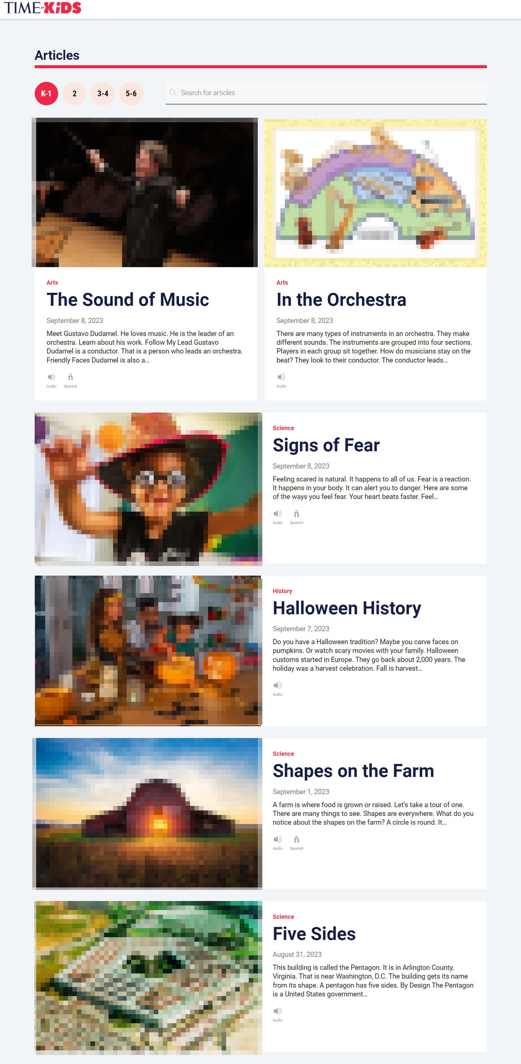 3. 학년에 따라서 이해하기 쉽고 짧은 기사들을 볼 수 있습니다.