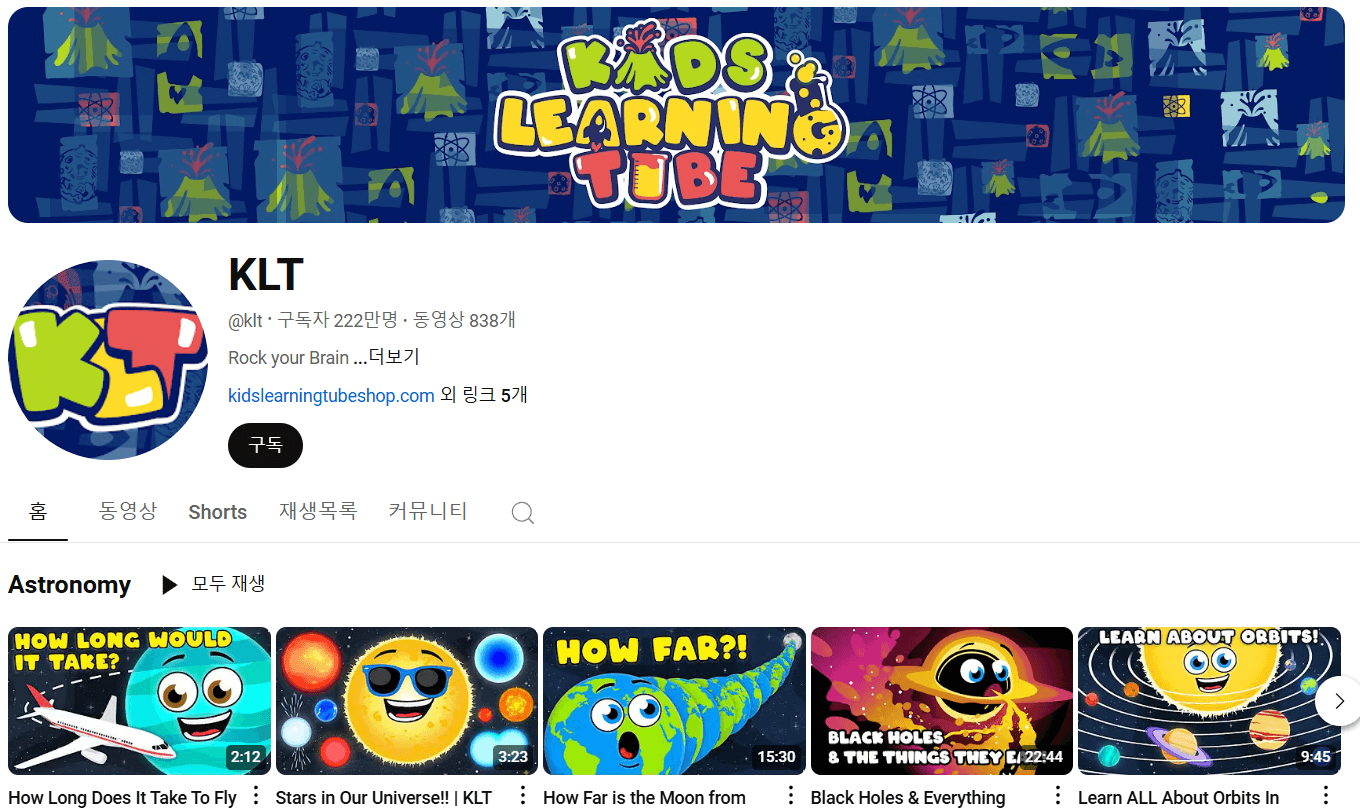 Kids Learning Tube는 과학, 수학, 지리, 언어 등 다양한 주제를 다룹니다. 특히, 여러 나라의 수도, 동물, 우주 등 교육적인 내용을 재미있는 방식으로 소개합니다.