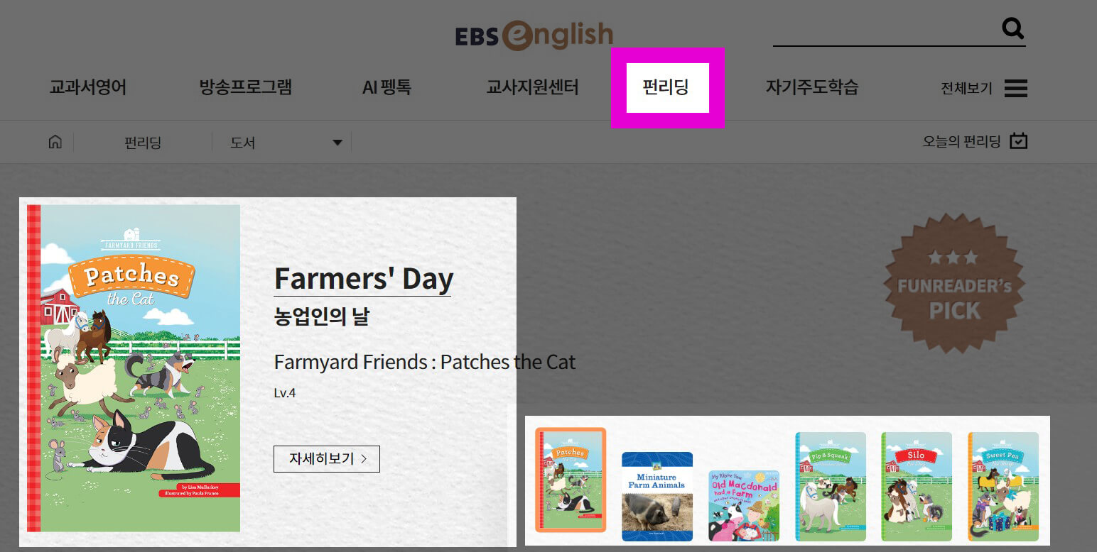 1. EBS e 잉글리시 사이트 카테고리에서 [펀리딩] 선택