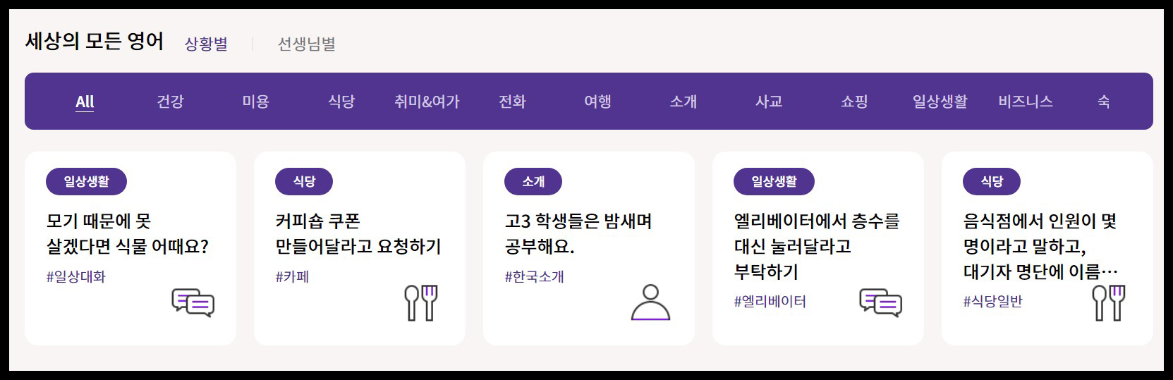 세상의 모든 영어 : 상황만 검색하면 상황 영어 사전을 검색할 수 있다.