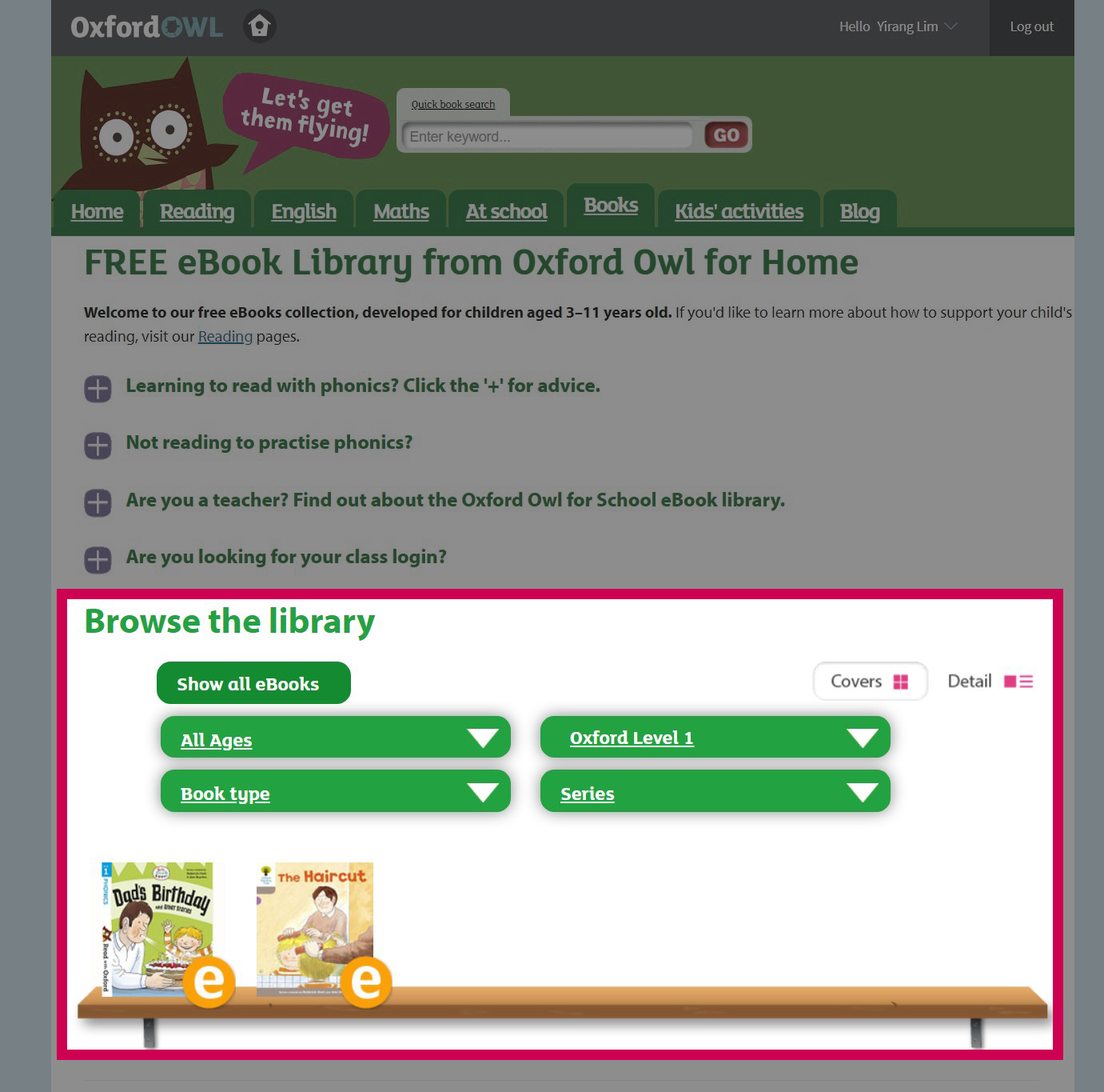 ORT 이외에 옥스포드 출판사에서 출간한 다른 시리즈도 체험 가능 리딩을 처음 시작하는 어린이들이 접근하기 쉬운 간단한 문장부터 긴 문장의 책까지 선택해서 읽을 수 있다.